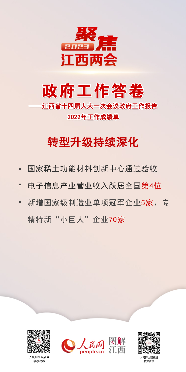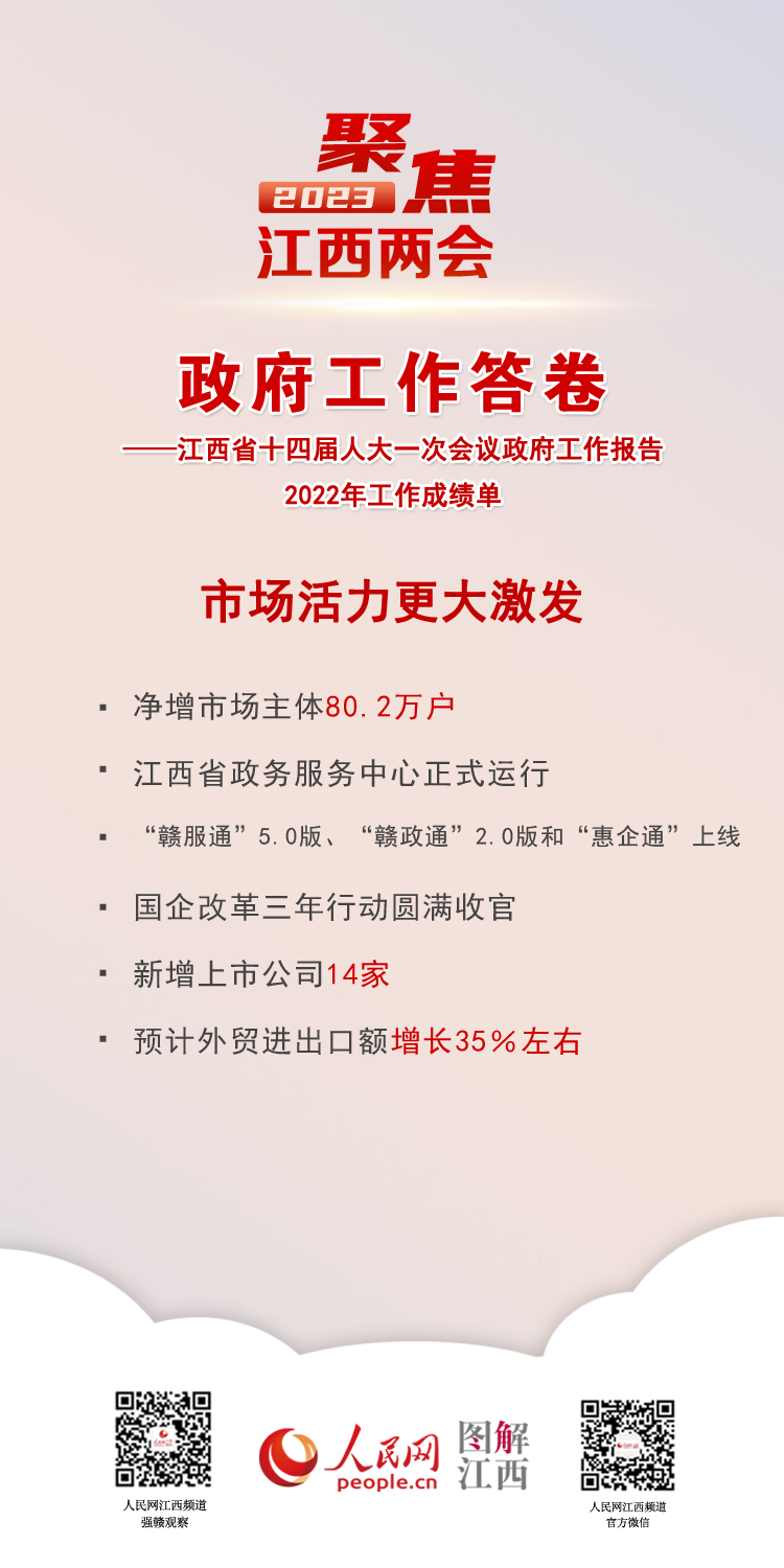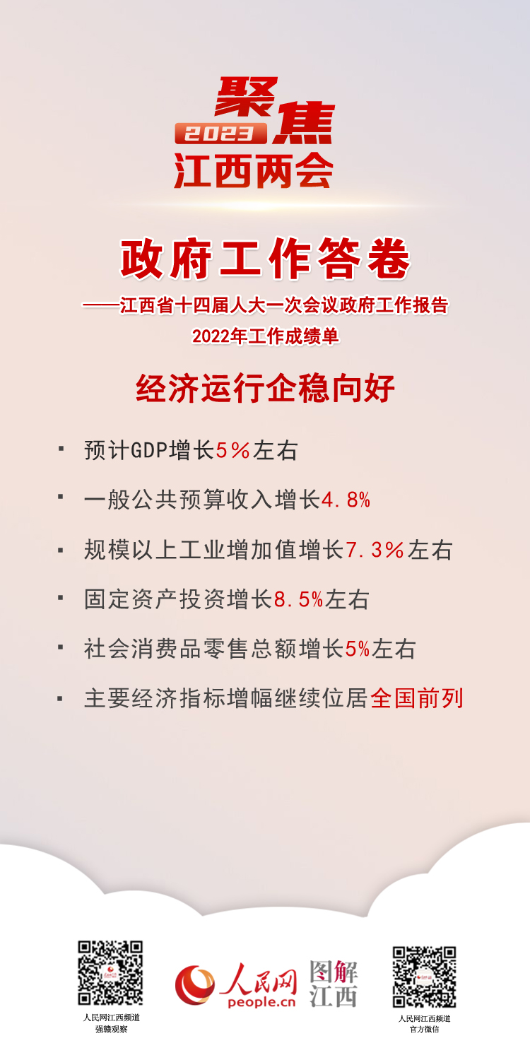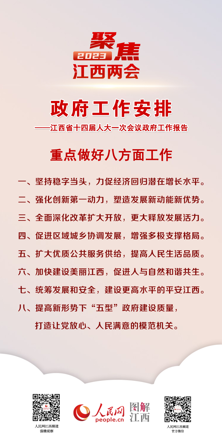 2023年江西省《政府工作报告》 聚焦江西2022年工作成绩单 2023年计划这么干 来源: 发布时间:2023-01-18 10:06:20 浏览次数: 次 【字体:小 大】 [转自江西省人民政府网] 责任编辑:金洋 【打印正文】