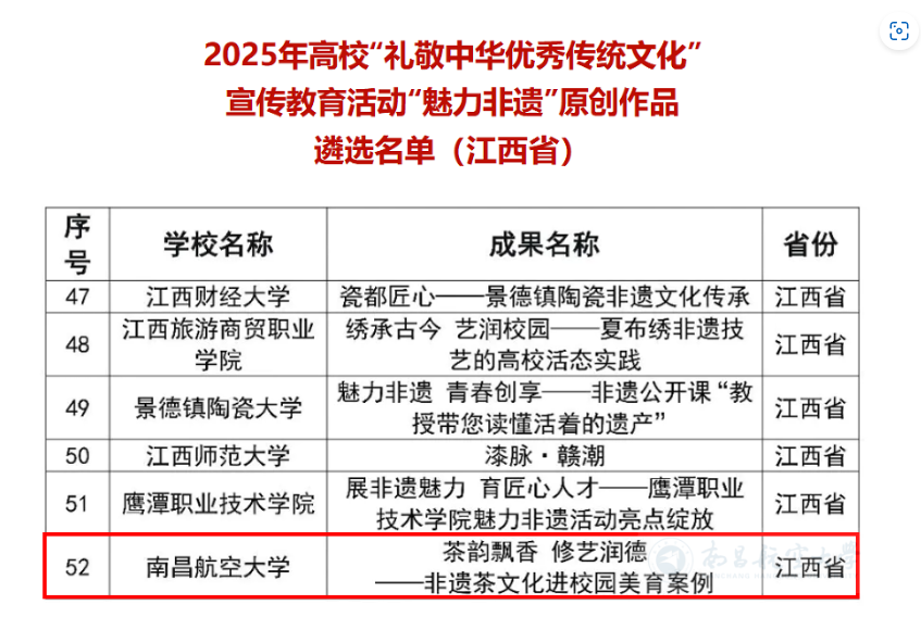 我校通识教育选修课程实践活动入选教育部2025年“魅力非遗”原创作品